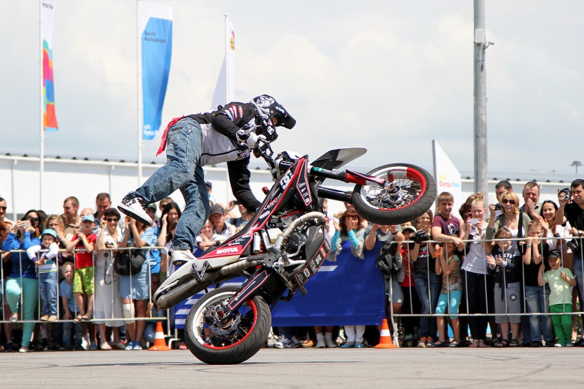 Победитель Олимпийских Экстремальных Игр 2007 в номинации «Стантрайдинг», обладатель кубка «Самый безбашенный трюк» на стритбайк-фристайл контесте «Moscow Stunt Jam» 2010 и прочее-прочее-прочее, Марат Канкадзе и его команда продемонстрировали 30 мая в Олимпийском парке свое мастерство.