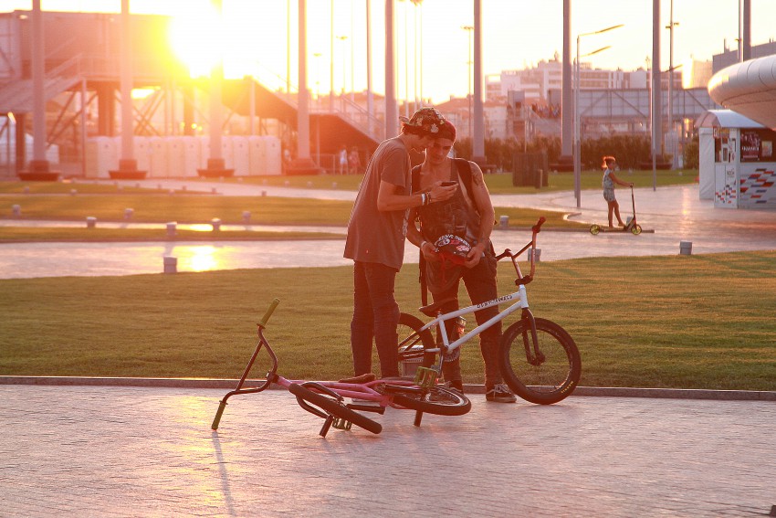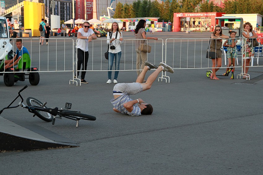 На Медальной площади, прямо рядом со сценой, установлен фанбокс с квотерами для великов, мини-рампа для скейта и стрит-линия для роликов, где гоняют красивые, молодые и безбашенные…