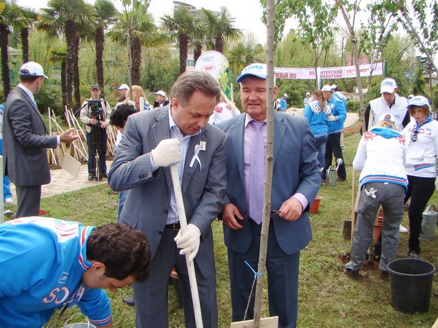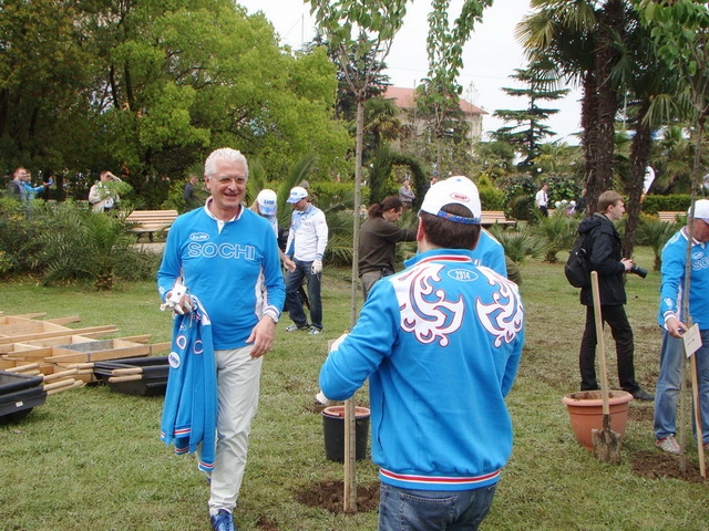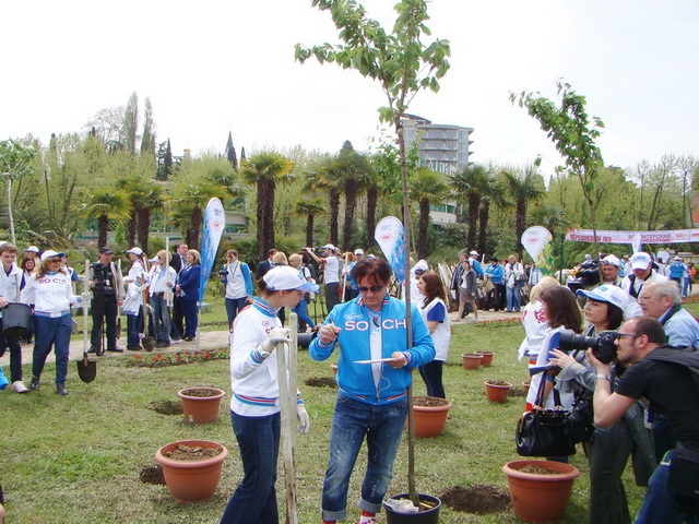 Надо признать, все прошло очень позитивно и доброжелательно. Мною были еще замечены Игорь Бутман, Ирина Роднина, Ирина Слуцкая, Оксана Пушкина, Вероника Боровик-Хильчевская (не исключено, что кого-то из наших знаменитых соотечественников могла и не заметить), представители сочинской администрации и Городского собрания. Посадили несколько деревьев и сотрудники Сбербанка. А также толпы журналистов федеральных и местных каналов и фотографов всех мастей: от профи до чайников-любителей, к коим принадлежит и ваша покорная слуга.