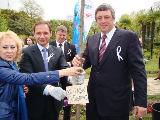 Через некоторое время появились официальные лица, главное место среди которых занимали, конечно, мэр Сочи Анатолий Пахомов и президент оргкомитета «Сочи-2014» Дмитрий Чернышенко.