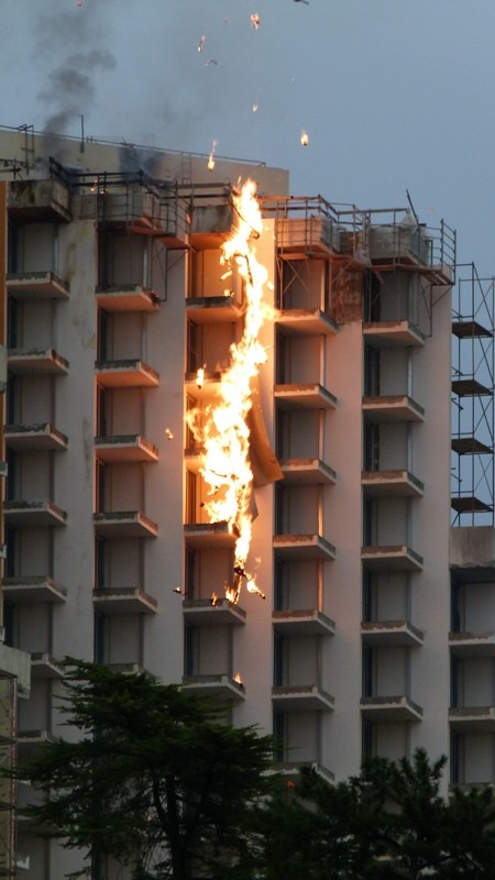 попахивает тем же не соблюдением требований пожарной безопасности, что и на одной из высоток Москвы-сити. Но как говориться материальные затраты понесет тот кто скуп, главное чтоб в этой ситуации люди не пострадали.