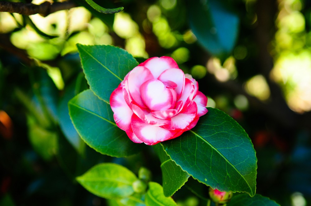 1- магония падуболистная, 2 — хеномелес (айва японская), 3 — анютины глазки, 4 и 5 — камелия, 6 — розмарин…