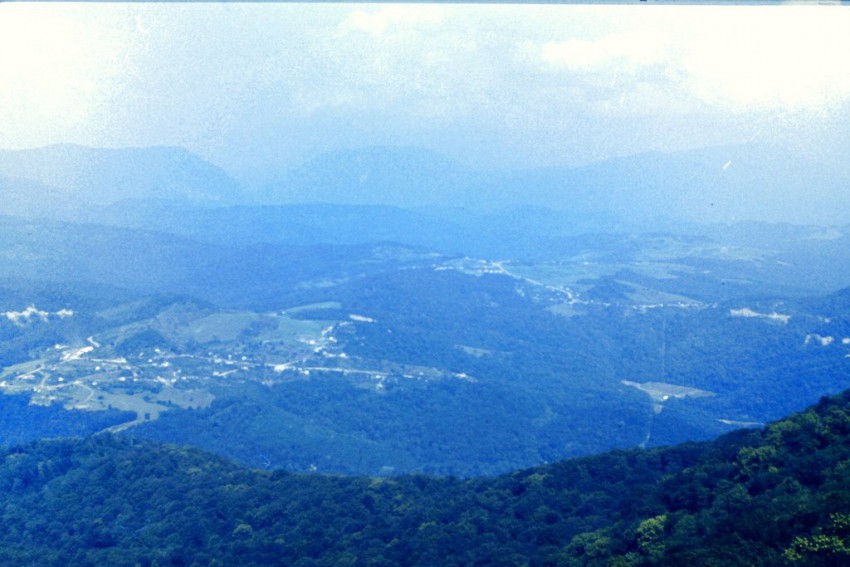 Лысая гора ещё не застроена, отчётливо видна пятиэтажка на самом верху.