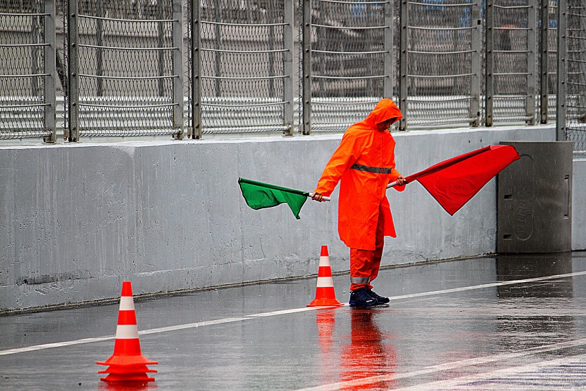 Дождь практически непрерывно шел в течение двух дней, серое небо красиво дополняло исполненный в серых и серебристых тонах облик Автодрома.
