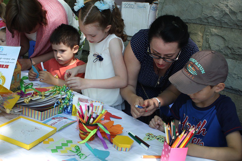 Параллельно в парке шли мастер-классы, дети рисовали, что-то лепили, изображали.