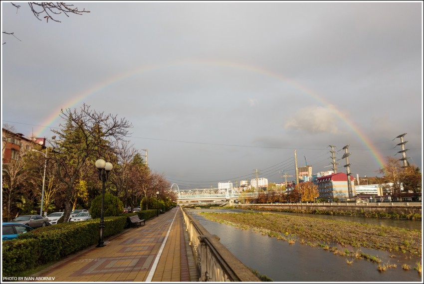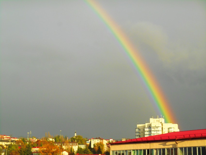 Сегодня в течении 10 минут в Сочи любовались необыкновенно яркой и четкой радугой.
