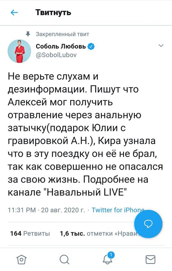 Была масса вариантов Навального в камере держать, а не выпускать человека под подпиской за границу. Чисто логически если подумать. Все, кто хоть более трезво оценивает работу «рыцарей яда и ледобура» понимают, что если слова Навального про попытку убийства хоть на 10% были правдой, его бы уже похоронили.