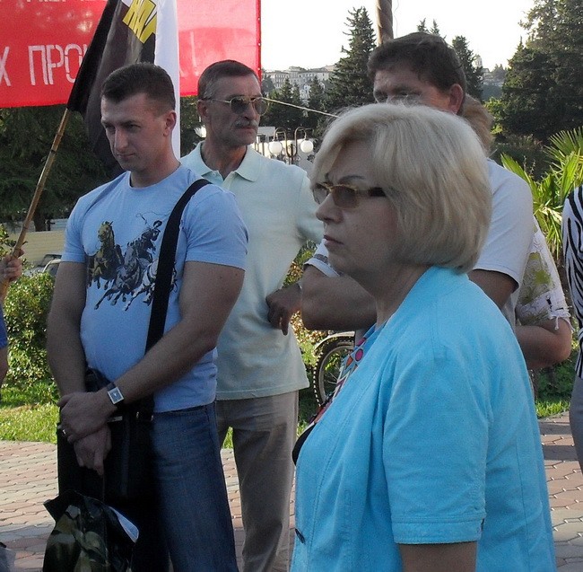 Случайно проходящая Людмила Иванова – член Единой России, которой в нарушение регламента дал микрофон не ведущий митинга, а выступающий, высказывающий свое личное мнение по волонтерам. Людмила Иванова, директор дома Моды на улице Парковой, которая таким чудесным способом вовремя приватизировала социалистическое имущество, в статусе случайно проходящей – случайно проходила там до самого конца митинга. Рассказала она как её бабушка плакала кровавыми слезами, когда в замен изымаемого имущества при социализме ей выдали социальное жилье согласно нормам. Но на митинге никто не увидел у неё кровавых слез по поводу изымания жилья пострадавших от переселения, которым даже не представляют жилье по существующим сциальным нормам. Кроме этих лиц записались высказать свое мнение еще два гражданина, которые так же не сострадали пострадавшим от действий олимпиады и поэтому решили, что они имеют право выступить на митинге против пострадавших (такова у них совесть) — обращает внимание их физическая подготовка – прямо «качки», которые также задержались до конца митинга, и даже после него беседовали в кругу таких же лиц.