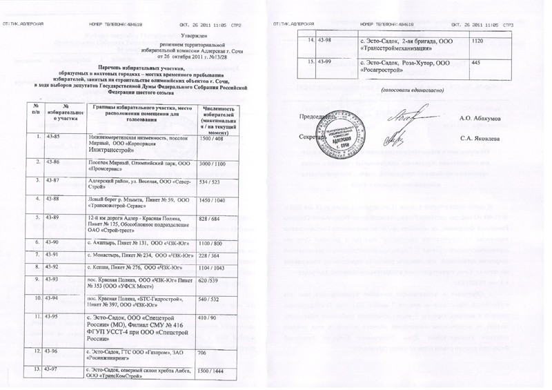 Оказалось, что 26 октября ТИК Адлерская приняла решение об образовании 15-ти дополнительных избирательных участков, якобы для олимпийских строителей.