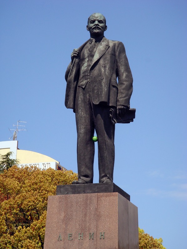 Чем язык чисать взял лестницу и отмыл памятник своего вождя. А то малого, что голуби его обгадили, так еще и ребятишки ему между ног пытались мячиком дать, пока тот не застрял. Работать надо с молодежью товарищ Дзагания, а не единоросов дружков награждать.