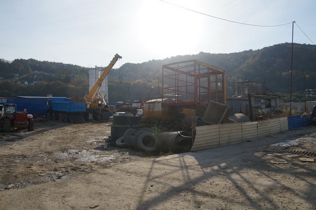 А это «жемчужина» курортного посёлка — стройбаза с РБУ и складами. Её тоже не было при коммунистах. Значит ли это, что тогда было совсем плохо?