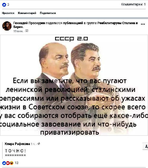 И нечего поливать грязью прошлое, из которого надо взять всё хорошее и отвергнуть плохое. Надо жить настоящим и устремлённым в будущие. А будущее России — социализм! Это и есть правда, доказанная историей.