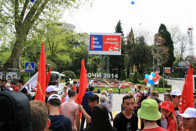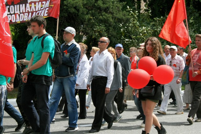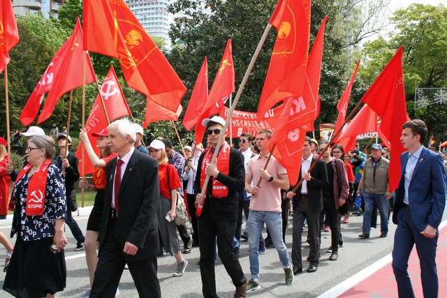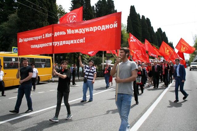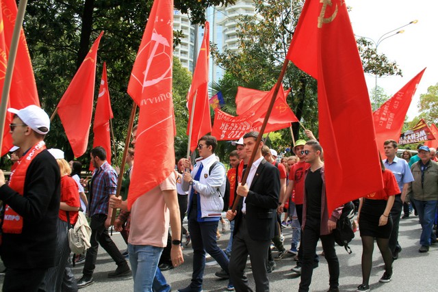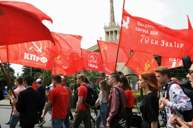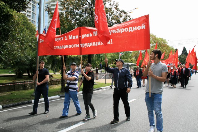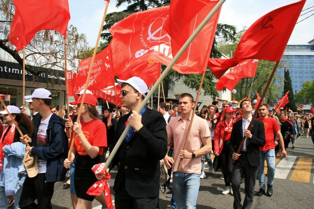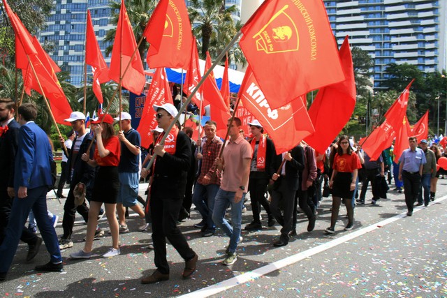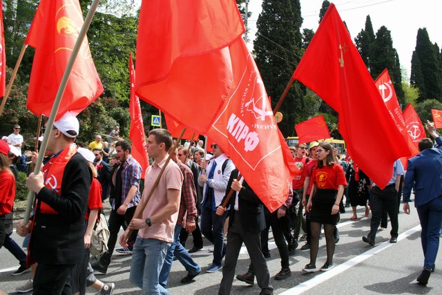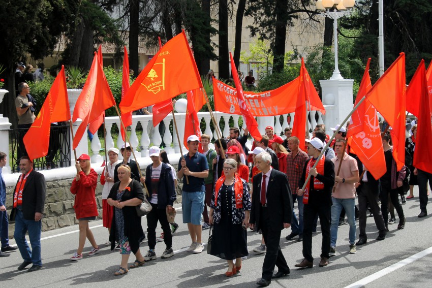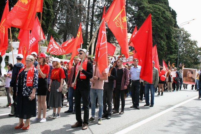 Демонстрация сочинцев 1 мая 2019 г. в колонне КПРФ и ЛКСМ