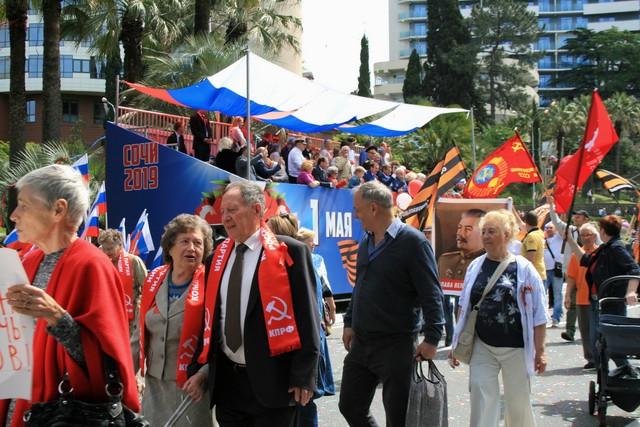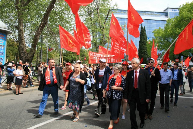 Фоторепортаж с митинга и демонстрации под красными знамёнами в День международной солидарности трудящихся 1 мая 2019 г. в городе-курорте Сочи