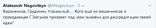 То, что зюга работает на госдеп уже миллион раз писано. На выборы президента не удалось госдепу пропихнуть Навального, так они через коммуняк пропихнули богатея, миллиардера, ограбившего селян, Грудинку. Та же команда кураторов, что проталкивала Навала, стала проталкивать Грудинку. Навал тоже, не особо афишируя, призвал своих хомячел поддержать Клубнику.