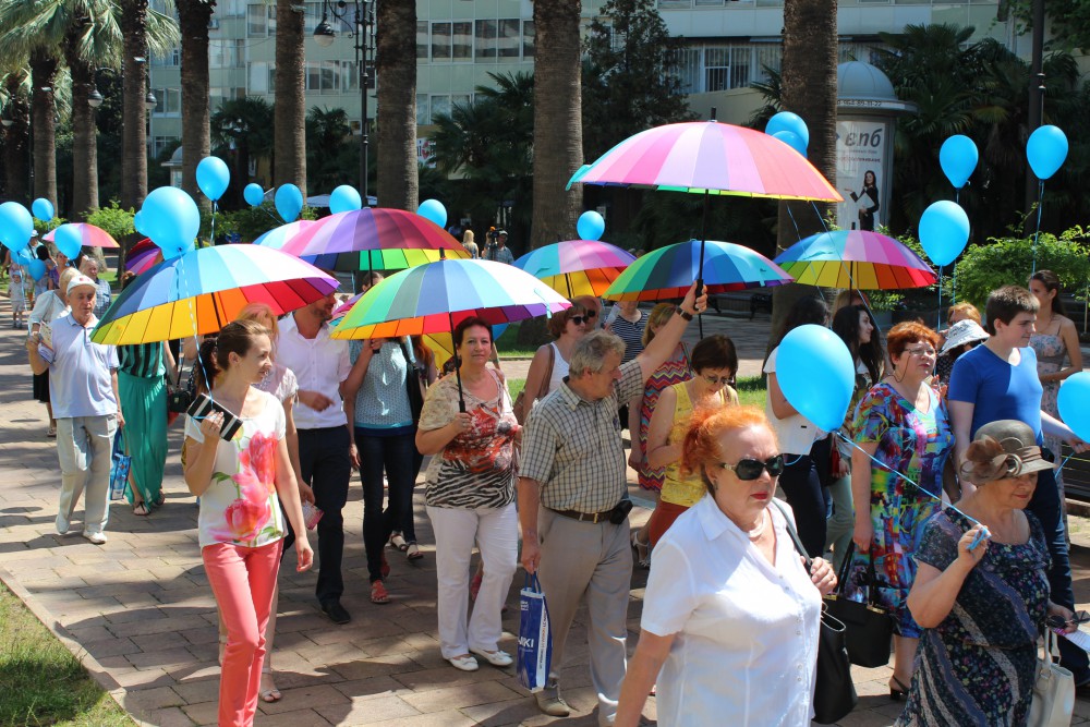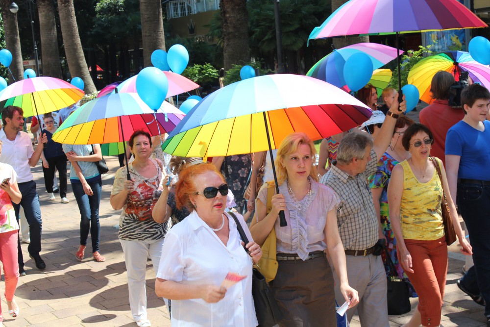 18 июня – Международный день гордости за успехи людей с расстройством аутистического спектра. НКО «Радуга Сочи» отметила этот день шествием с радужными зонтами по ул. Навагинская. Получилось яркое красивое мероприятие, в котором участвовали и взрослые и дети. В конце все присутствующие загадали теплые пожелания всем людям с ограниченными возможностями здоровья и отпустили свои пожелания вместе с гелиевыми шариками в небо, которое было удивительно голубым и ясным в этот день.