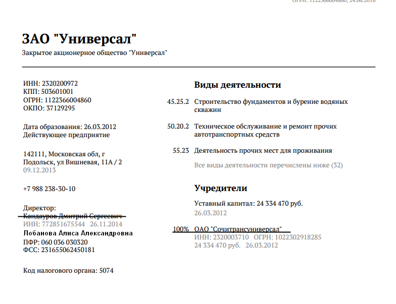 И пока он трудился директором, такой жопы у ЗАО «Универсал» не наблюдалось…