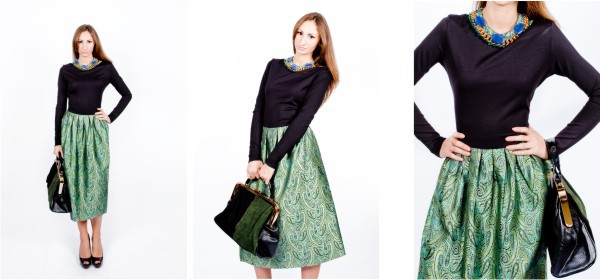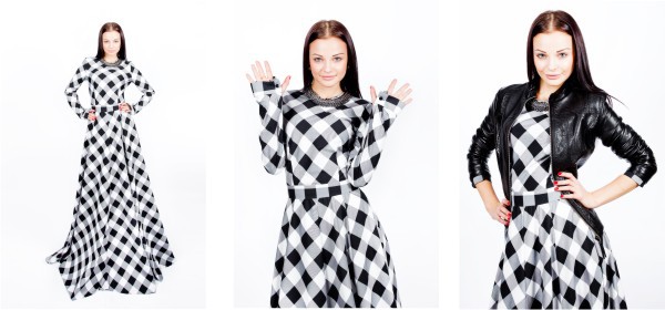 Платье «Ромб» -7899 руб. Куртка «Эко-кожа» — 2999 руб. Колье «Бусины» — 1199 руб.