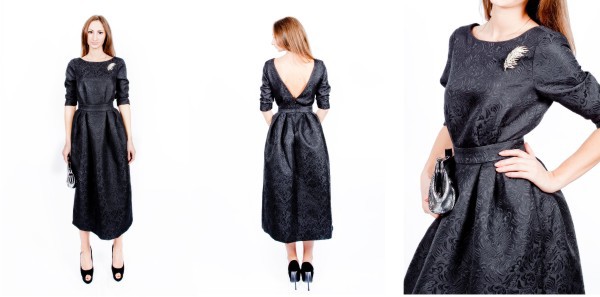 Платье «Брошь» — 5999 руб. Клатч серебро кожа натуральная — 2199 руб.