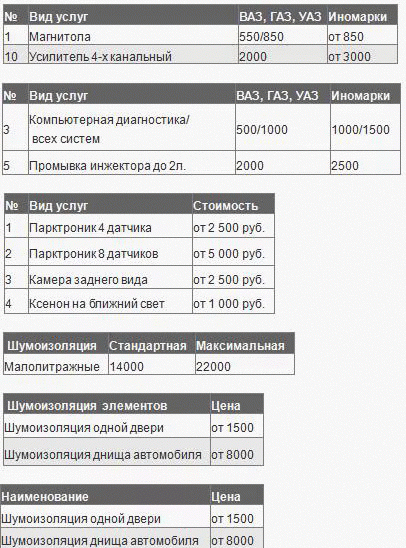 Цены на основные работы: