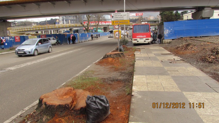 А через дорогу вырубить 13 здоровых многолетних дерева: 10 кипарисов, два платана, 1 магнолия (диаметром 28-55 см.)…