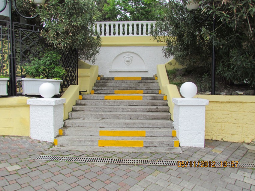 Странное дело, лестница не крутая, перила выведены так, что понятно — достаточно было сделать пандус более пологим и всё… Люди, работающие на благоустройстве пляжа, рассказали, что на пляже будет дежурить человек, который в случае необходимости, поможет человеку на инвалидной коляске. На мой вопрос: «Почему нельзя было сделать нормальный пандус, чтобы можно было съехать и подняться на набережную без поисков и ожидания такого человека ?» Вразумительного ответа я не услышала…