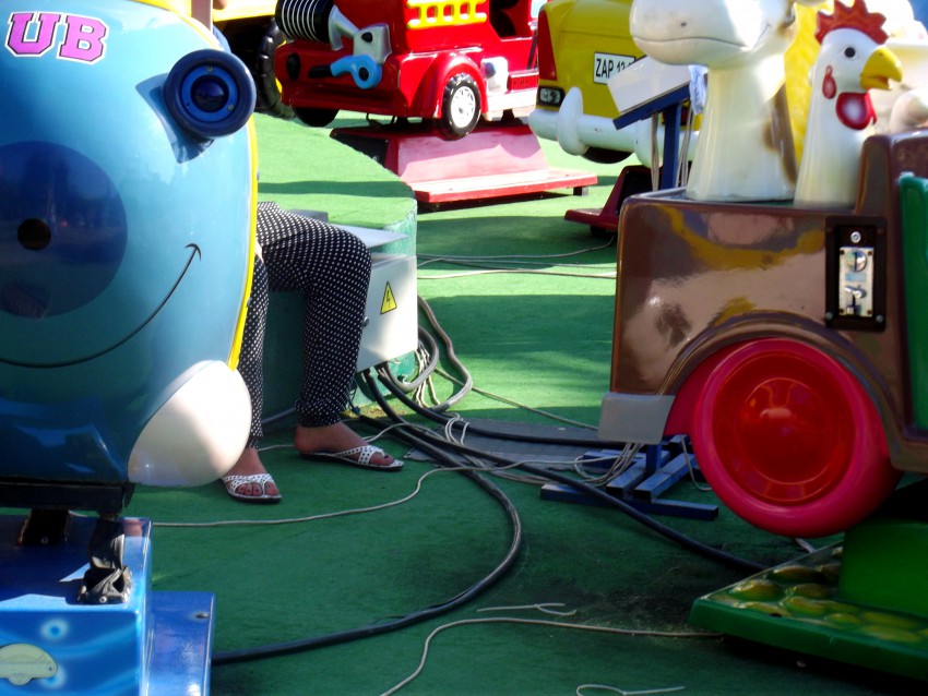 В парке началась перестановка аттракционов, отсюда горки сложенной плитки и ограждения, лежащие в стороне… Этот аттракицион