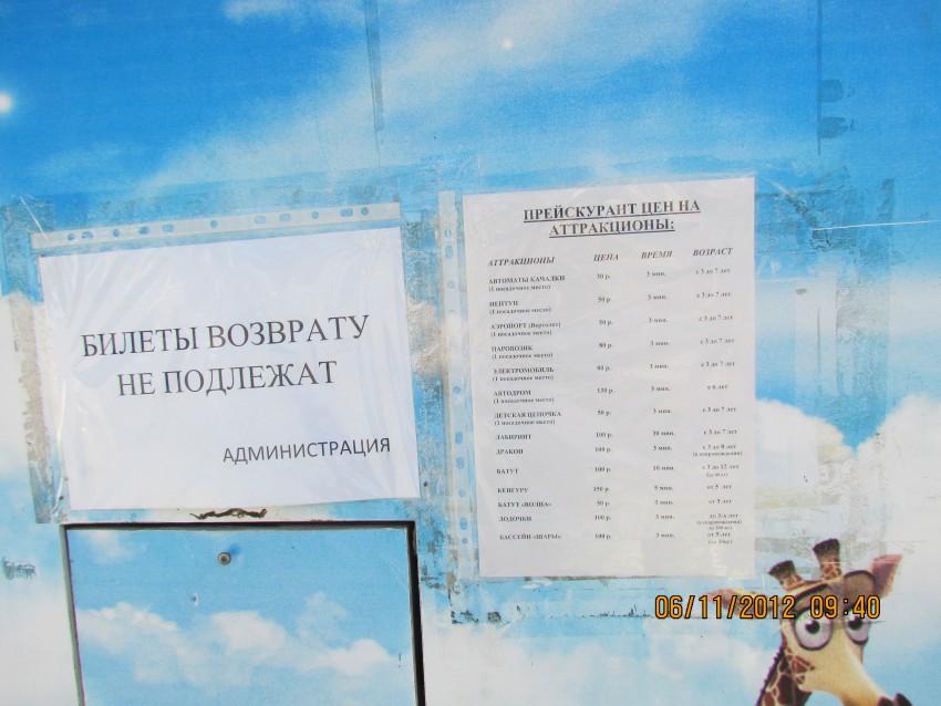 А объекты построенные на его территории вместо аттракционов (Ветерок, Ромашка, Орбита) никакого какого отношения не относящиеся к детским аттракционам сокрыты.