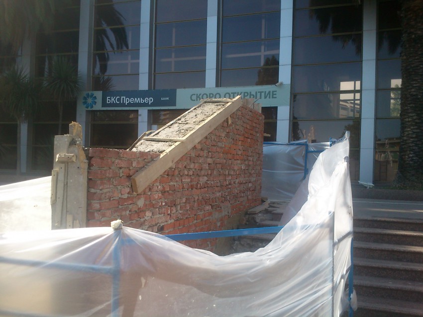 Подозрительная строительная активность на лестнице главпочтамта. Как видно из фотографий, на пандус это мало похоже. Зато это может быть прекрасным забор для нового банка, который въехал в бывший офис Нокии.