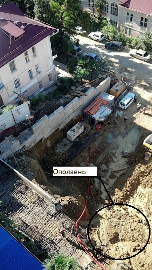 Сверху этого не видно, но с учетом этого оползня — весьма вероятно что кубанская 15 просто грохнется на горе строителей и еще нагорную 19А (высотка напротив) — зацепит так не слабо.