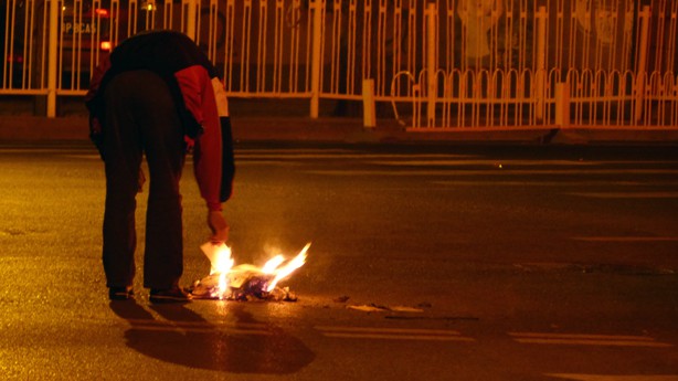 А это фотография, как утилизируют мусор из уличных урн в Пекине. Сначала я не поняла, почему в разных местах поздним вечером горят костры. Где побольше, где поменьше, а потом увидела, как достают мусор из урны и поджигают. Креативно :)