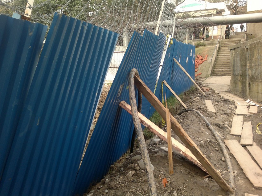 Кстати, вариант № 3 вполне реалистичен — железный забор в настоящее время висит на…волоске нескольких дощечках.
