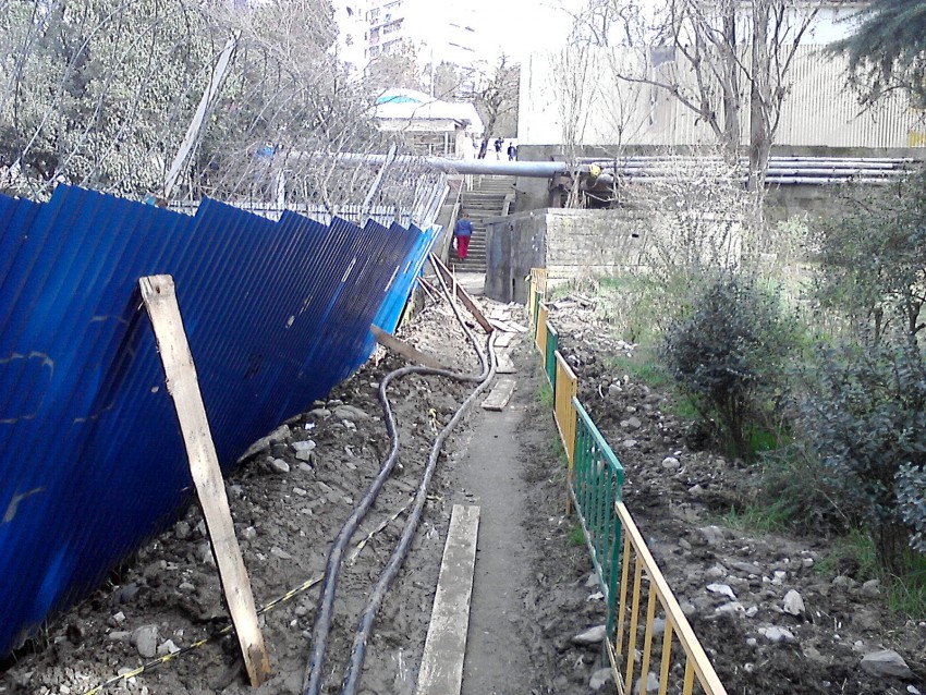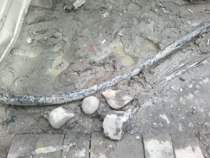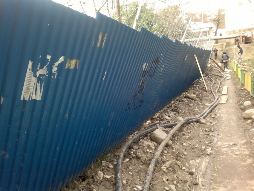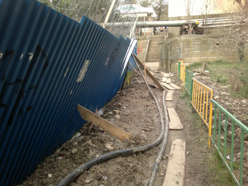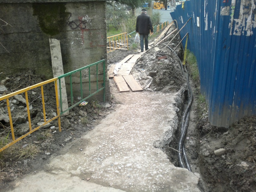 Но вдругпо плану… кто-то решил протянуть электрокабель к высоткам по пер. Горького. Что из этого получилось? Да ничего хорошего! И теперь то, что в ясную солнечную погоду вы придёте домой буквально по щиколотку в грязи, — это ещё, как говорится, «цветочки». А вот «ягодки» уж будут — поверьте, гораздо серьёзнее. После дефиле по дорожке, точнее, по дощечкам и картонкам, кем-то «заботливо» там постеленным, у вас есть варианты — на выбор.
