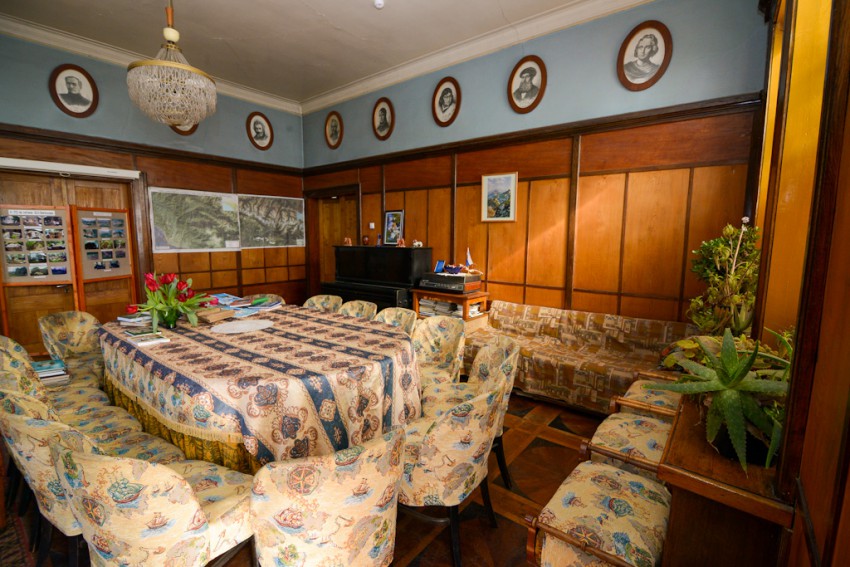 В здании расположен геологический музей, огромная научная библиотека, выставка старинных географических карт, фотографий и художественных полотен. Всё это собранные по крупицам знания. В зале заседаний проводятся конференции и курсы экскурсоводов, действует постоянный лекторий. На территории усадьбы размещается живая коллекция редких растений, останавливаются участники многочисленных экспедиций и проводятся студенческие полевые практики.