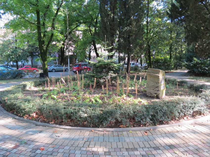Уголок Венчагова у «Филатеолии» будет содержать арендатор, т.е. г-н Оскеро. Вроде бы договариваются с женщиной, которая будет за ним ухаживать. Уже сейчас видно, что сухостой убран, сорняки — нет.