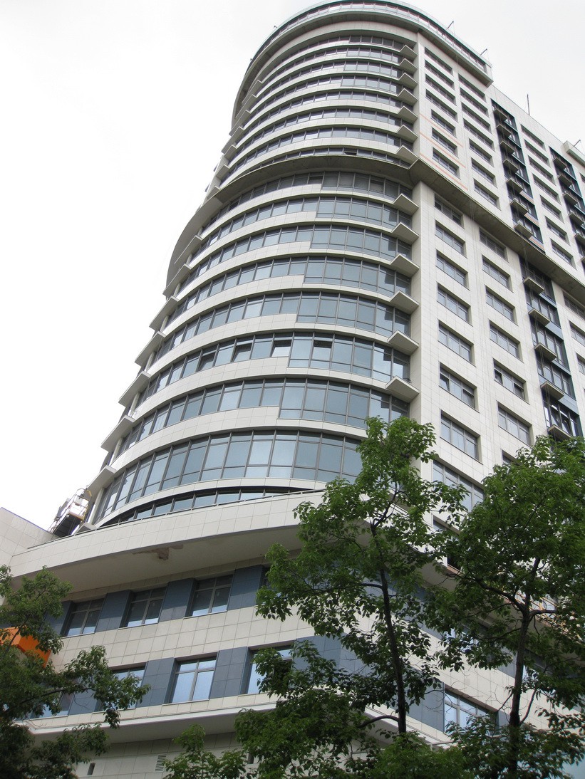 И таким он получился в 2013 году. Обратите внимание на издевательский карниз посредине здания.