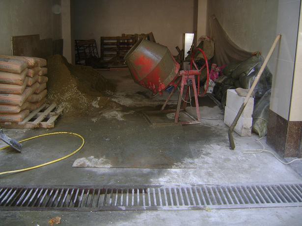 Это с переулочка, напротив жилого дома. В ливнёвку отсюда уже стекает бетон.