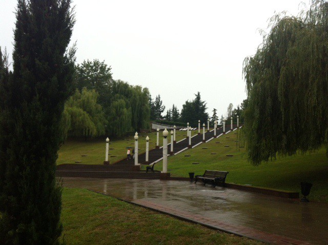 Правда были во время дождя и нормальные люди — пришедшие к Мемориалу почтить память героев.