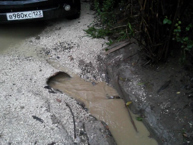 Сегодня мы обратились в наш новоиспеченный МУП «Водосток» по поводу засыпанной щебнем ливневой канализации, а там нам ответили, что это к их компетенции не относится, т.к. они придомовыми ливневками не занимаются, а только МУНИЦИПАЛЬНЫМИ вдоль дорог. Предложили нам обратиться в УК РЭО № 7. А там нам сказали мы обслуживаем только дом, а придомовую территорию… и вообще к нам подрядчик проводящий работы не обращался и мы ничего не знаем. Предложили нам обратиться на горячую линию администрации города, там вам может помогут. И там нам конечно же помогли дали телефон отдела развития при администрации и телефон ОАО «Кубаньэнерго» звоните, только трубку там никто не поднимает.