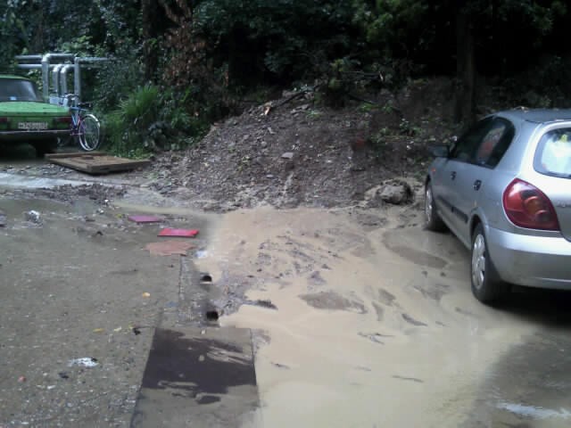 «а из-за того что и вдоль горы тоже прокопали просто разбили ливневку сегодня земля сползла к подъездам вместе с гаражом с ул. Пасечной»
