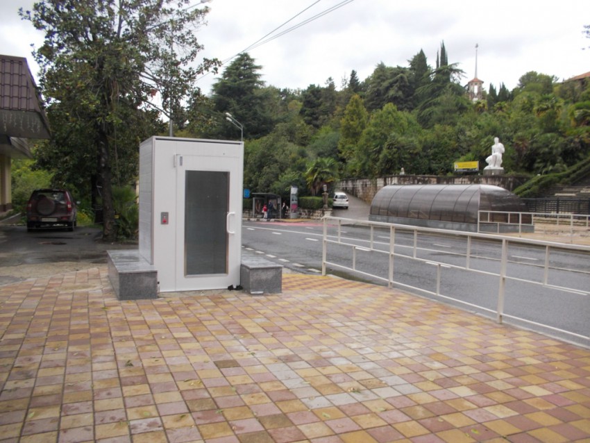 Далее знаменитые сочинские пандусы — радует уже то, что пандус есть! И даже с поручнями — вдруг инвалиду взбредет в голову самостоятельно заехать по нему под таким углом.