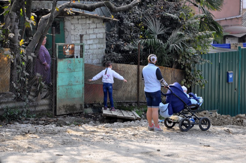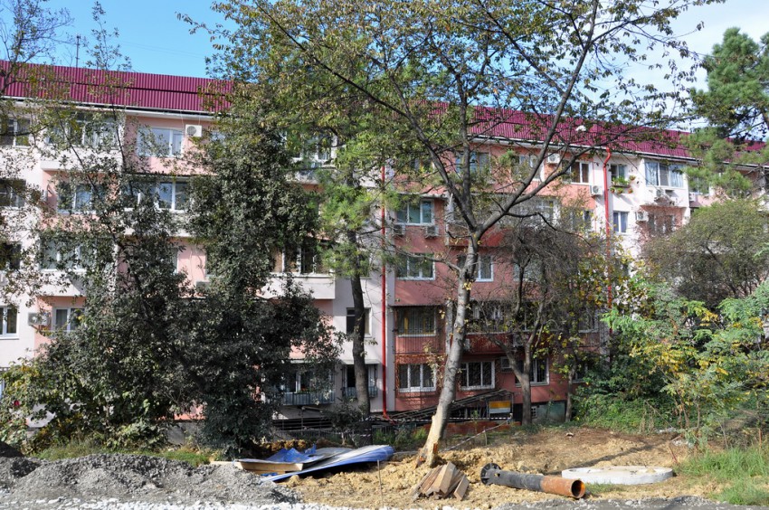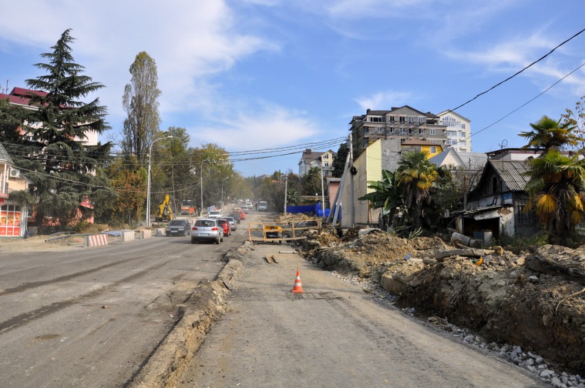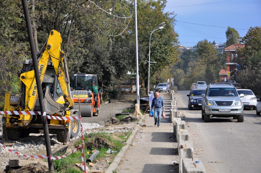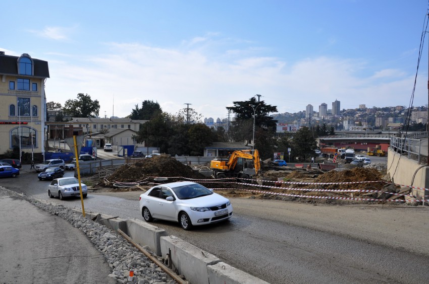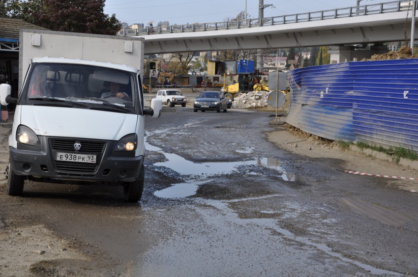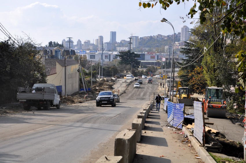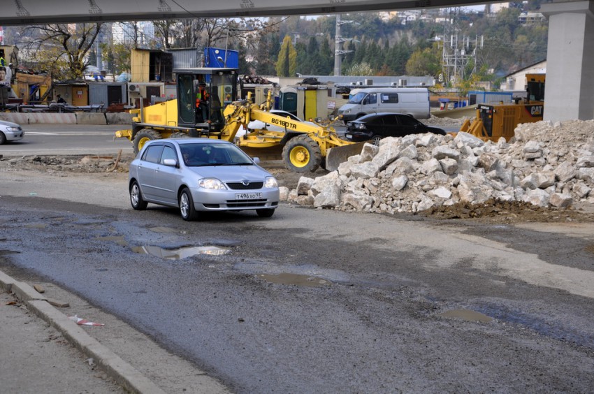 Темпы приведения города к олимпийскому облику просто поражают. Дорожная развязка на Макаренко строилась четыре года, а в последний момент решили все доделать в авральном порядке. Я уже писал про дорогу на улицу Вишневую, на въезде в микрорайон со стороны Краснодарского кольца дела не лучше. На Макаренко всего два участка улиц с проезжими частями, более-менее соответствующими слову «дорога». Первый — это новый асфальт на подъеме от «Сочинки» вверх до Церкви, и второй — мимо кинотеатра «Сочи» и Почты. Впрочем, последний тянет на хорошую дорогу с натяжкой, местами покрыт разрытиями и ямами. Всё остальное подходит под уже привычное понятие «олимпийское бездорожье». Дорожное покрытие — это полбеды, то, что творится вокруг дорог — не поддается никакому словесному описанию…