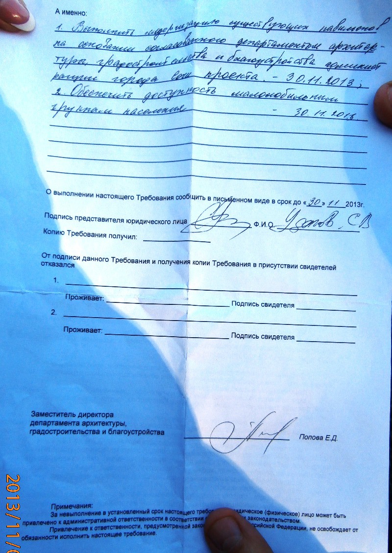 Со стороны ул. Войкова стояли два павильона, стилизованные под сталинский ампир… Размещались они там по решению комиссии — как объекты мелкорозничной торговли. Срок аренды истекает 31 декабря 2013г. Некая госпожа Попова выдаёт предписание господину Удалову привести их внешний вид к общему олимпийскому облику…