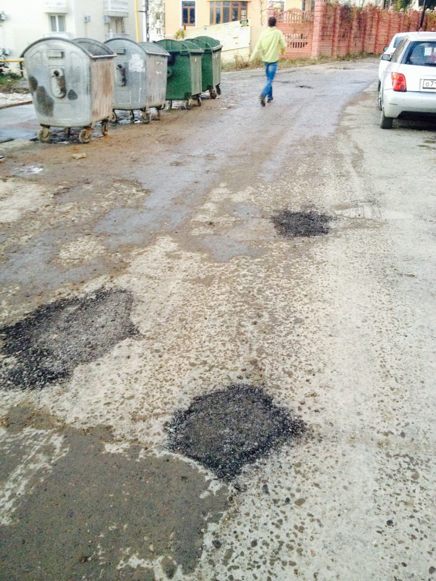 Улица хоть узкая и не длинная, но вся в ямах, местами достаточно больших. Ну вот и решили сделать «ямочный ремонт»- самый популярный вид ремонта дорог в России.