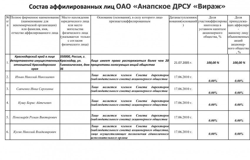 Полное наименование Открытое акционерное общество «Анапское дорожное ремонтно-строительное управление»Вираж"