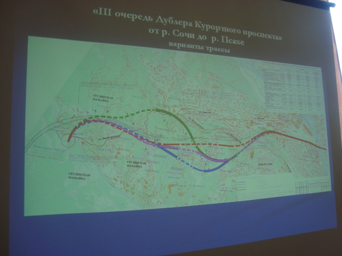 24.06.2010 года, в связи с протестами граждан г. Сочи по поводу начавшегося, на муниципальной земле, на границе жилой застройки и в водоохраной зоне, строительства моста через р. Сочи (на стыке II и III очереди Дублера), для анализа альтернативных вариантов строительства III очереди Дублера Курортного проспекта, была создана рабочая группа с участием специалистов г. Сочи и представителей РОСАВТОДОРА: заказчика, проектных и строительных организаций.