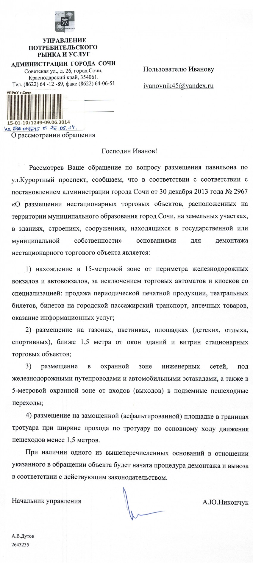 В преддверии Олимпиады городские власти хорошо почистили так называемые объекты мелкорозничной торговли, на которые не нужно никаких дополнительных согласований и разрешений… Только дислокация составленная управлением потребительского рынка и услуг администрации города Сочи, которое возглавляет Никончук Андрей Юрьевич и утверждает, небезызвестный заместитель главы города Ясюк Олег Валентинович. Что-то совсем убрали, что-то привели в соответствие с единым олимпийским стилем. Я всё ждала, когда со знакового места города — Платановой аллеи уберут этот чёрный гроб, украшенный искусственными цветами… Ничего подобного — выстоял!!! Видно стоит под высокой крышей…