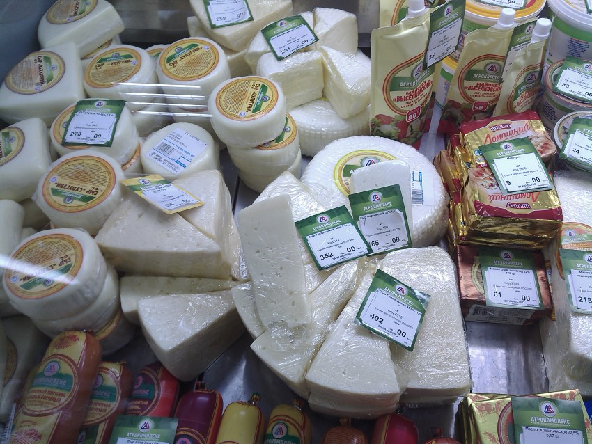 Сыр-молодой российский. Колбаса-не помню, 250 стоит кг…