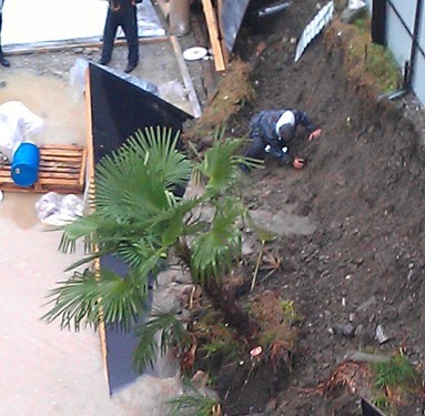 Пальму жалко! ((( Да и близлежащие дома могут пострадать — жители могут обнаружить трещины на стенах своих квартир… Ползущий грунт — он такой (((. А снимки сделаны уже после вчерашнего ливня?