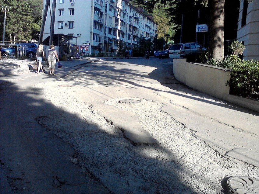 Потому что автомобилистов, решивших проехать по этому участку, ожидает «засада» в виде колдобин, ям и канализационных люков, возвышающихся над поверхностью дороги. Что весьма небезопасно. Правда, для занятий джипингом — самое оно.